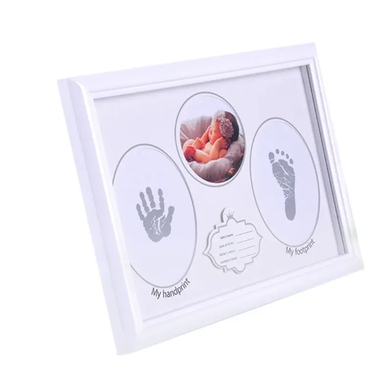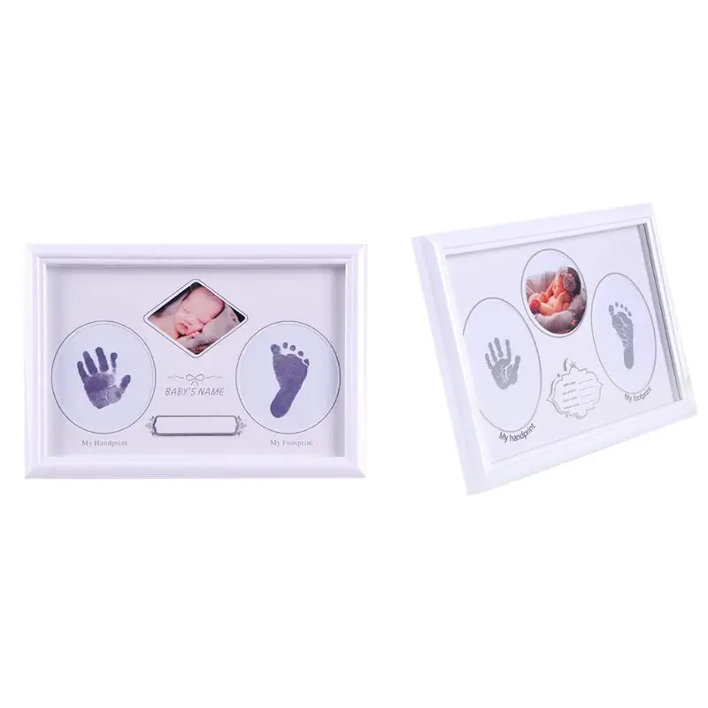 Baby Newborn Hand and Foot Prints Full Moon Hundred Days Infants Commemorative Frame Wooden Photo F