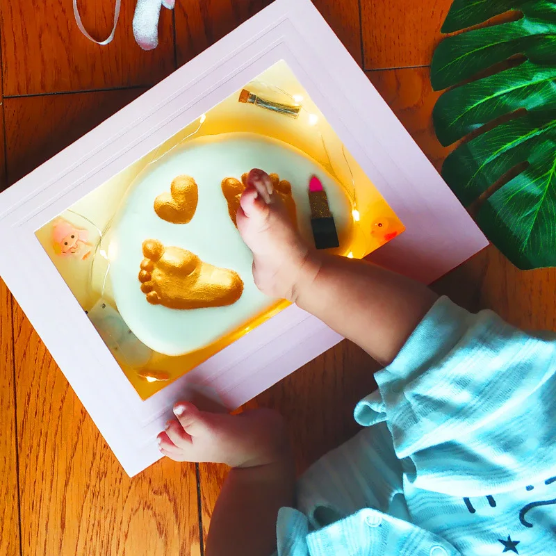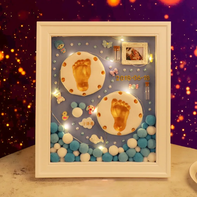 Best 3D Baby Souvenir Set Handprint Footprint Soft Clay Photo Frame Newborn Exquisite Decorations Orname