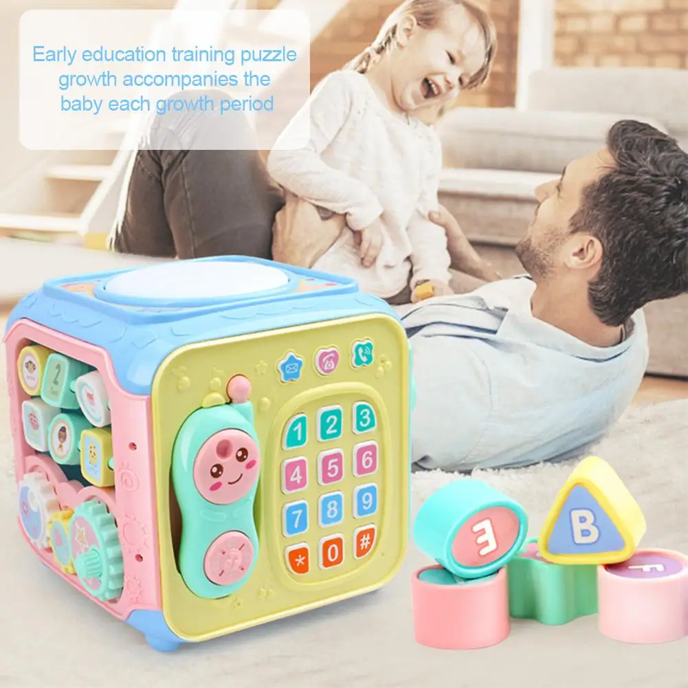 Baby Hand Drums Children's Hexahedron Puzzle Function Toy Table Desktop Early Education Music Study